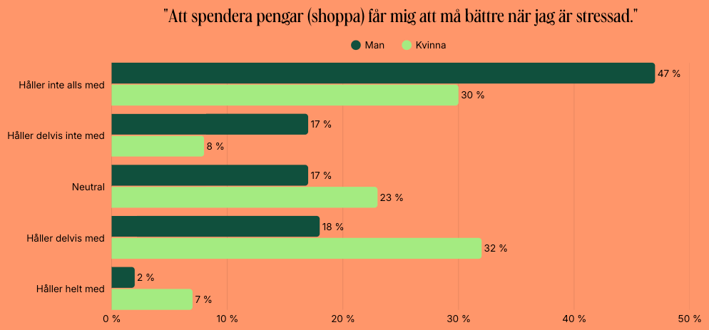 Påstående: “Att spendera pengar (shoppa) får mig att må bättre när jag är stressad.”