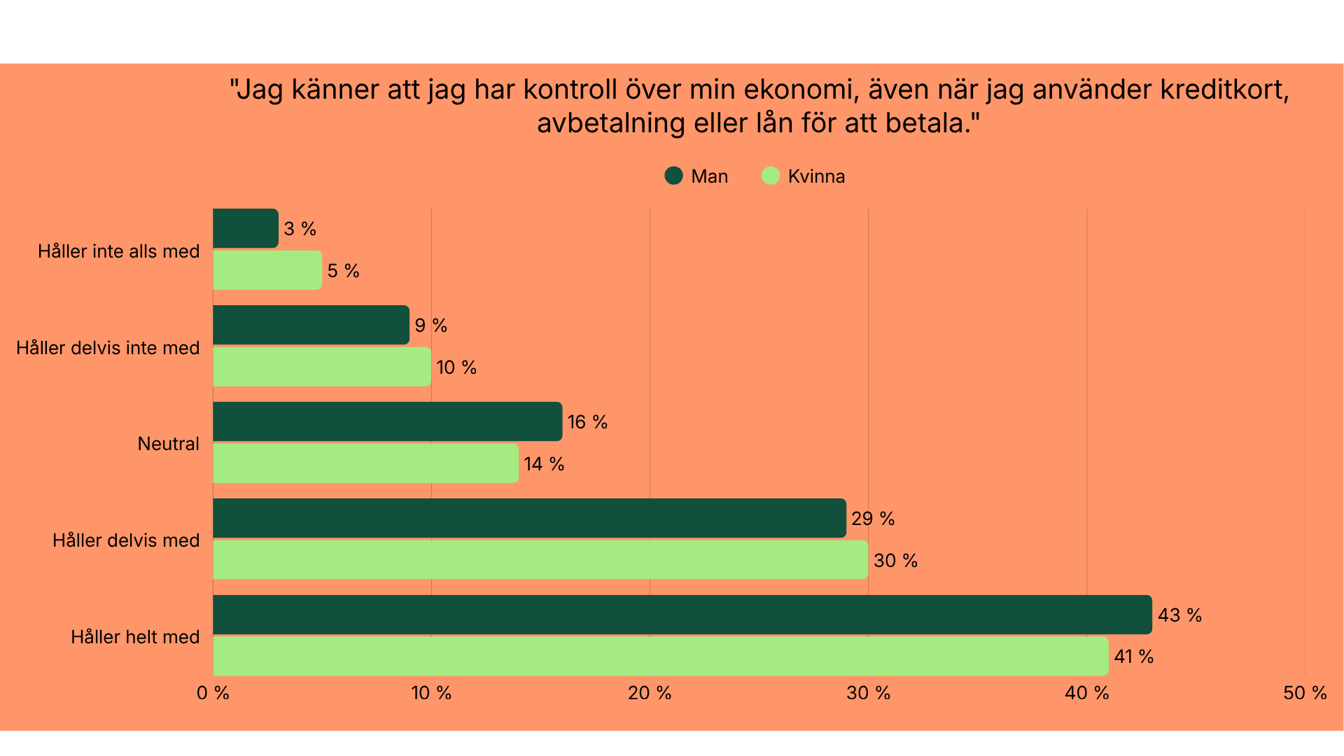 Påstående: “Jag känner att jag har kontroll över min ekonomi, även när jag använder kreditkort, avbetalningar eller lån för att betala.”